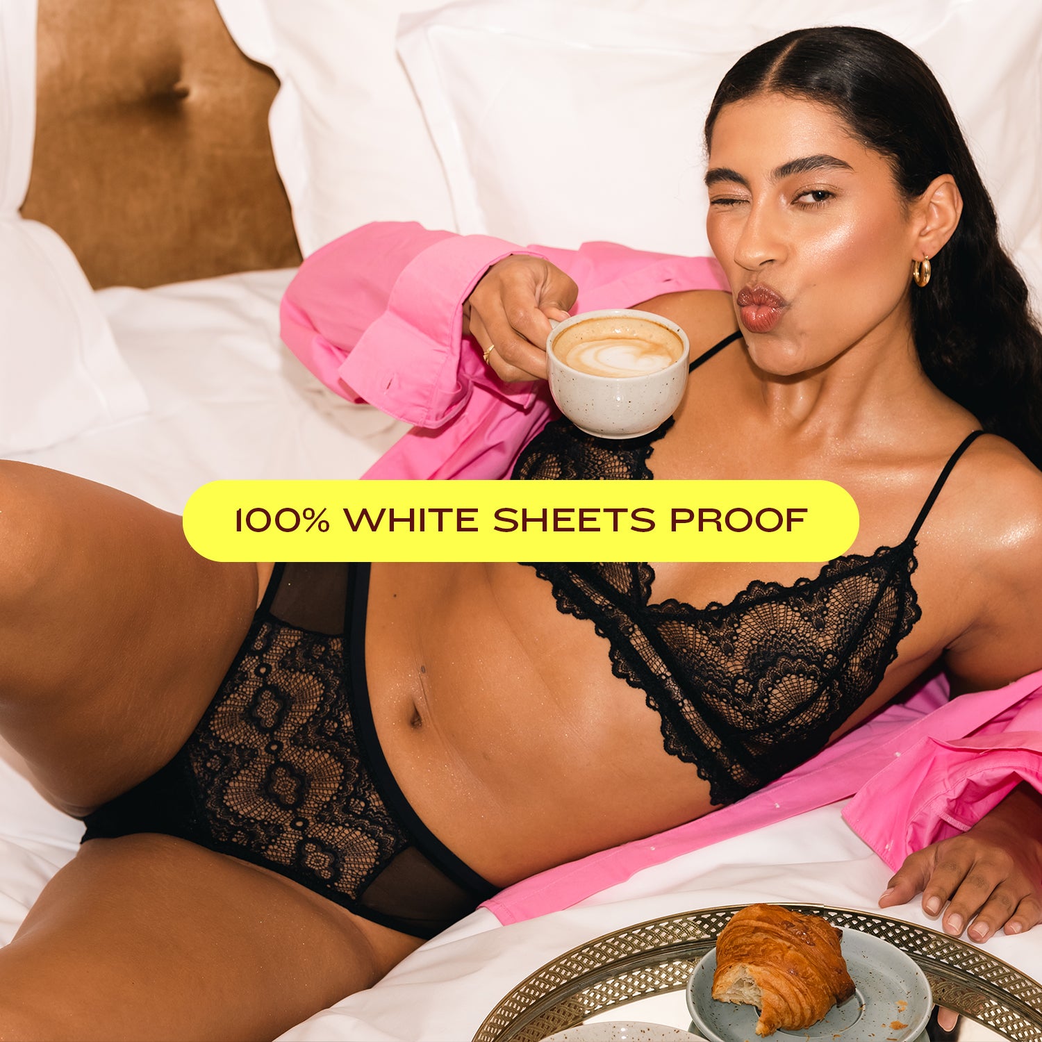 "Während Komfort während unserer Periode absolute Priorität hat, bedeutet das nicht, dass wir uns nicht trotzdem sexy fühlen wollen. Zum Glück hat es Understatement geschafft, schützende Unterwäsche aus farbenfroher Spitze herzustellen."