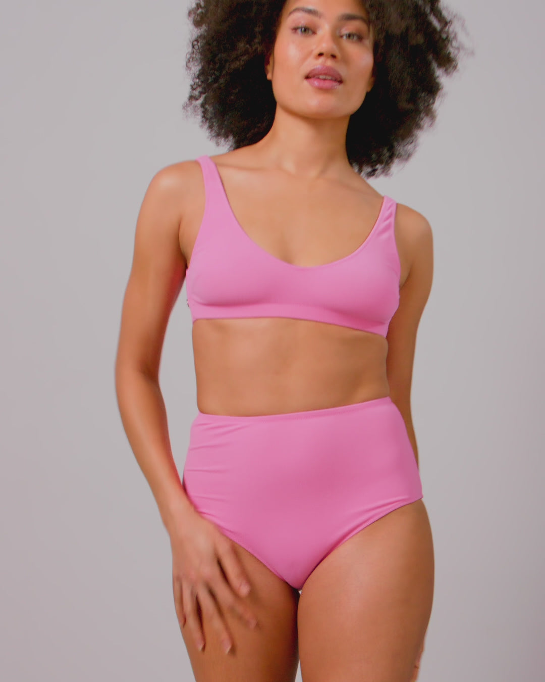 • Bikini-Slip mit hohem Bund und schmeichelhafter vollständiger Abdeckung auf der Rückseite