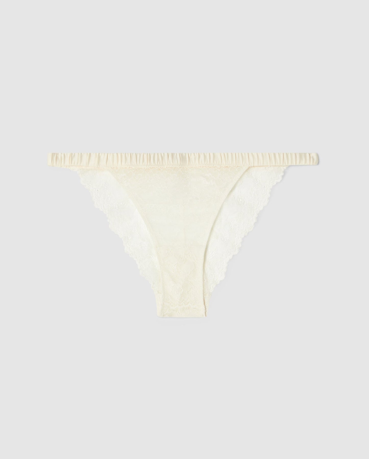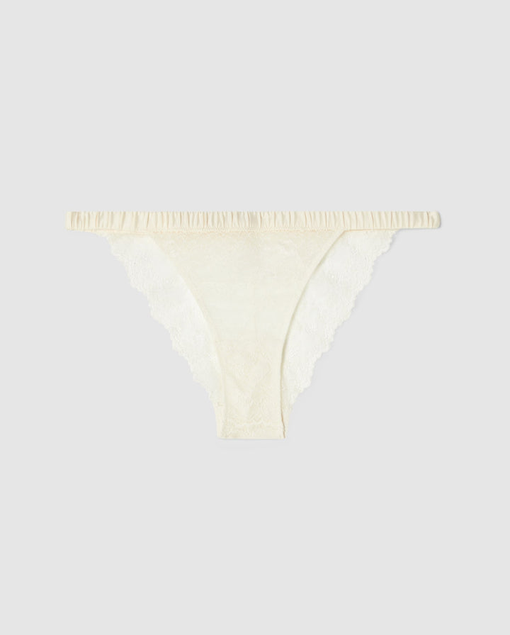 Slip aus Spitze im Tanga-Stil mit einem Hauch von Satin.