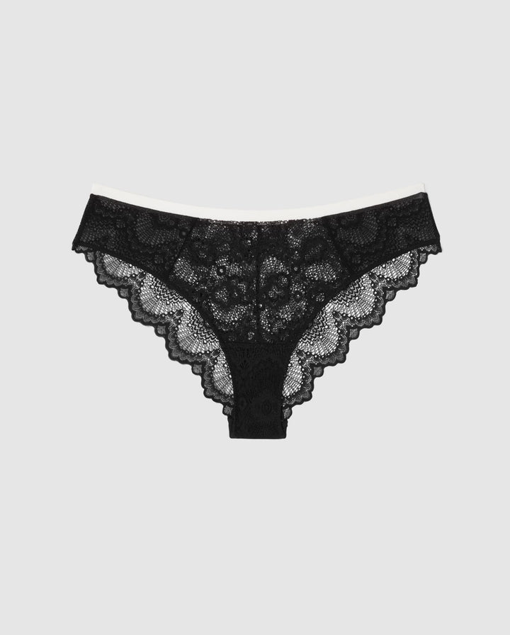 • Höschen aus durchgehender Spitze mit Wellenkanten auf der Rückseite
