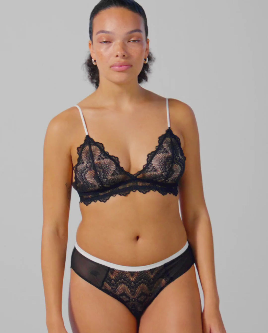 Spitze, die sich super weich auf Deiner Haut anfühlt! Mehr muss man nicht sagen. Unsere charakteristische Spitze bietet einen leichten Stretch und ausgezeichnete Atmungsaktivität. Hergestellt aus 84% Polyamid und 16% Elasthan.