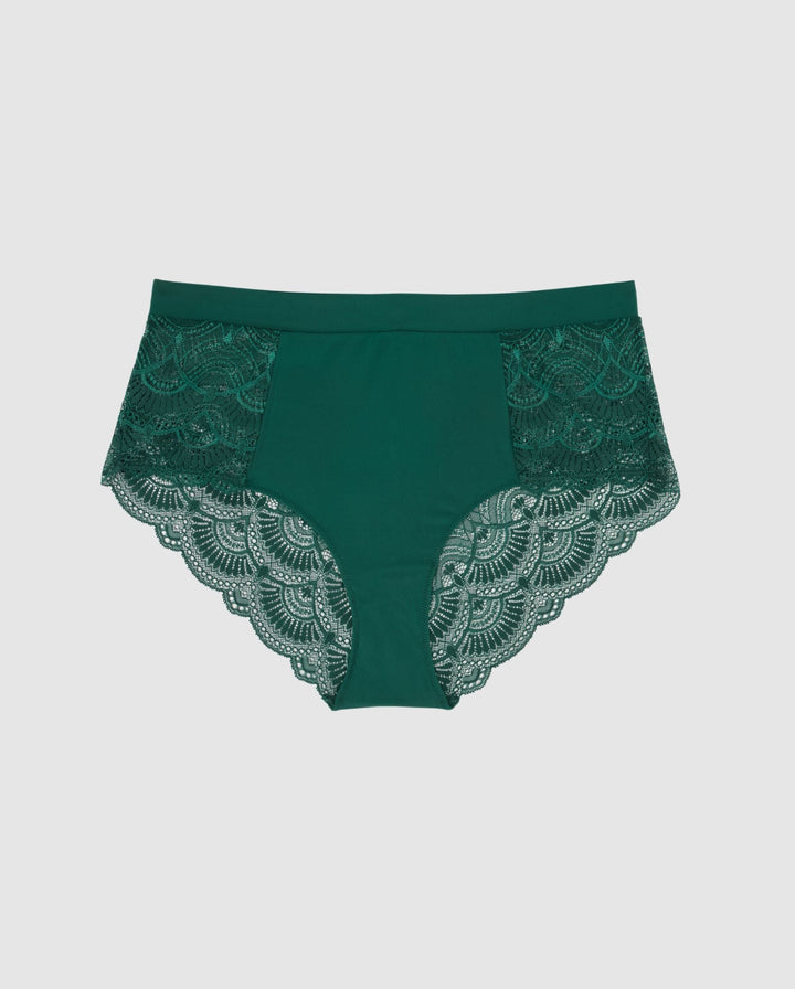 Lace Highwaist Briefs Pine Green/Candy Pink