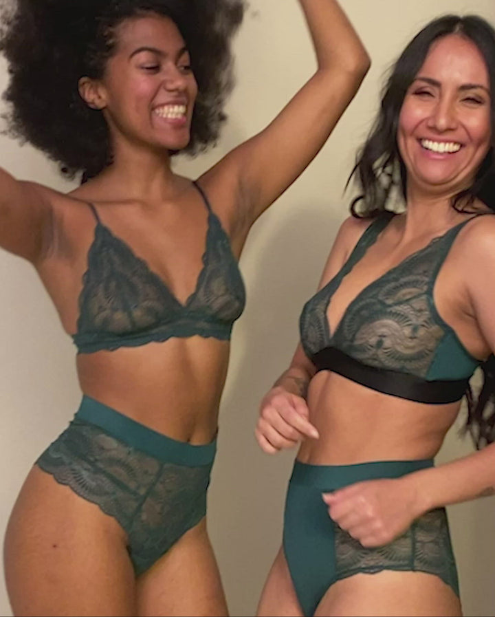 ● Spitze: 59 % Polyamid, 18 % Bio-Baumwolle, 13 % recyceltes Elastan, 10 % Elastan