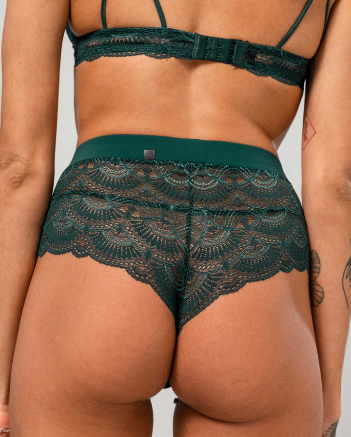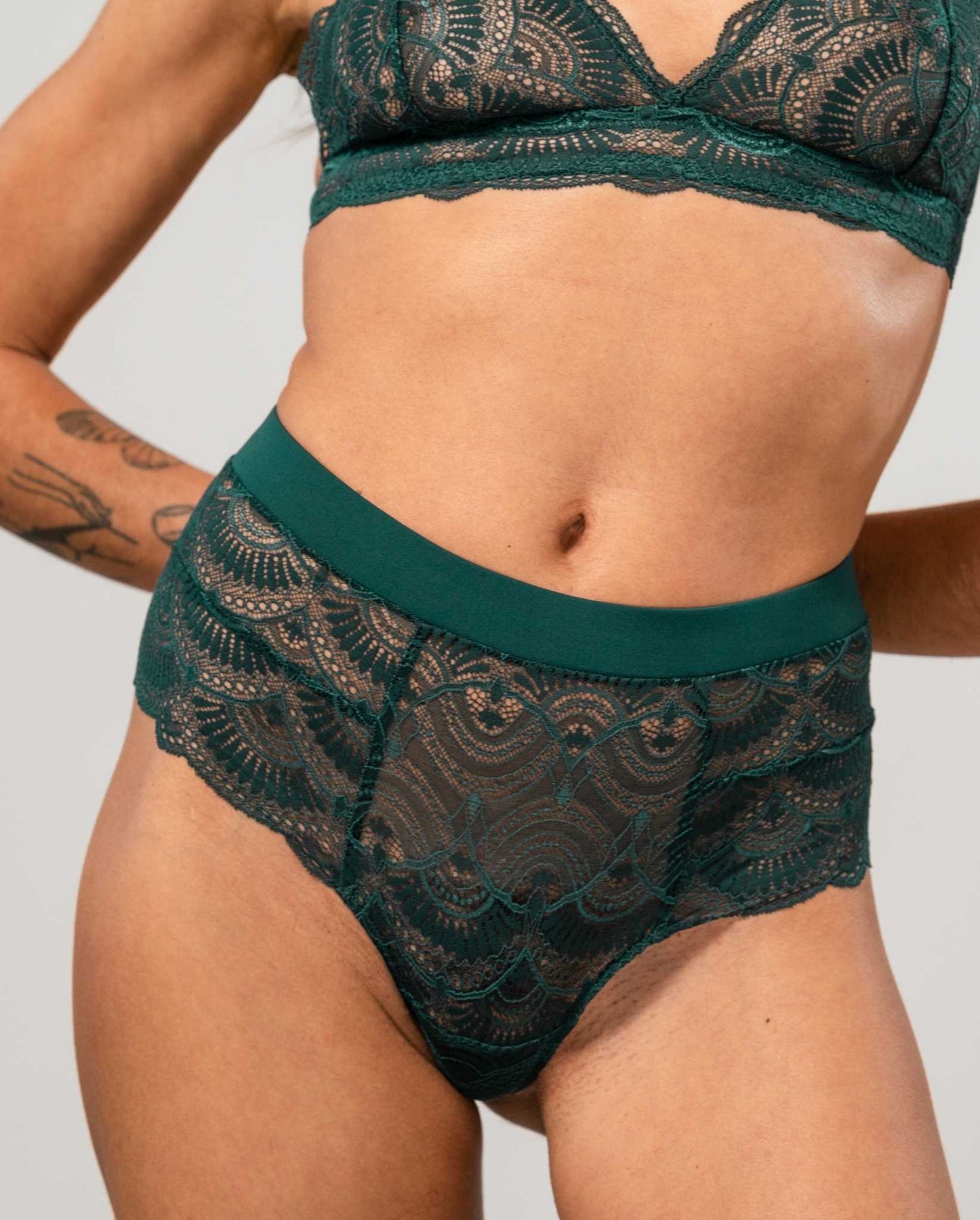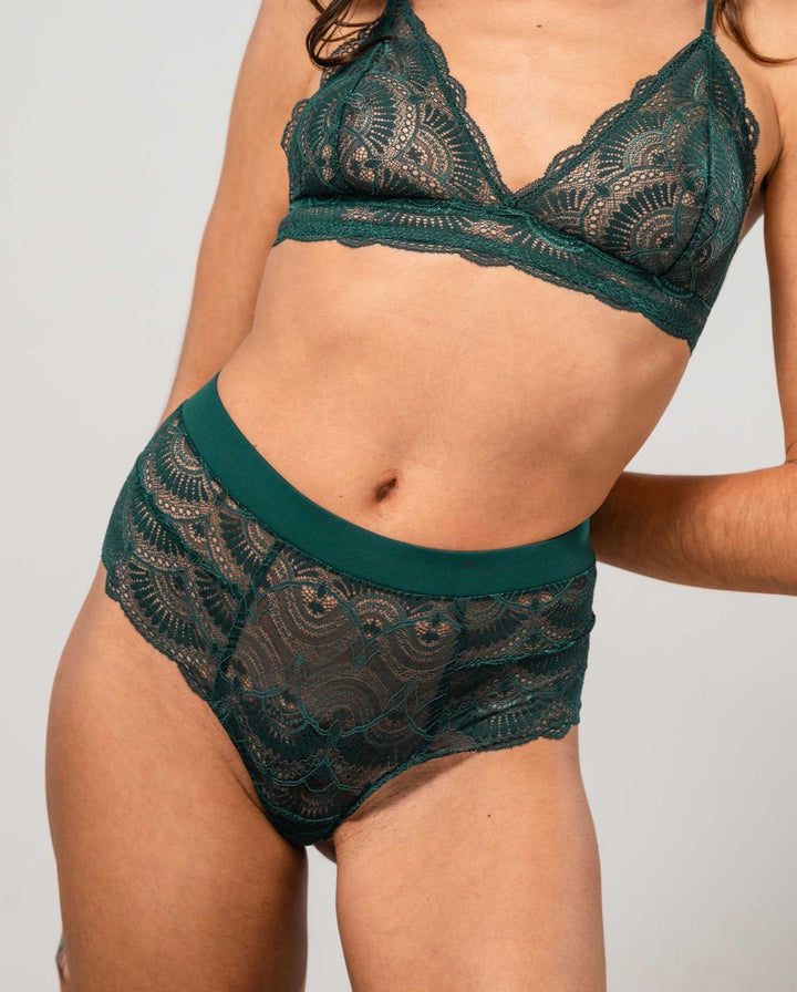 ● Spitze: 59 % Polyamid, 18 % Bio-Baumwolle, 13 % recyceltes Elastan, 10 % Elastan