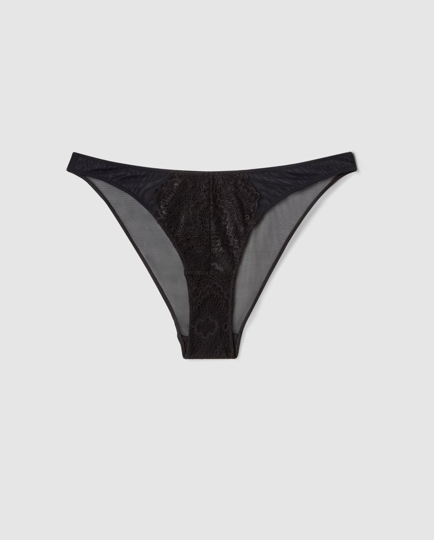 Kaum spürbare Elastikbänder. Gebogener Bund. Mesh & Spitze.