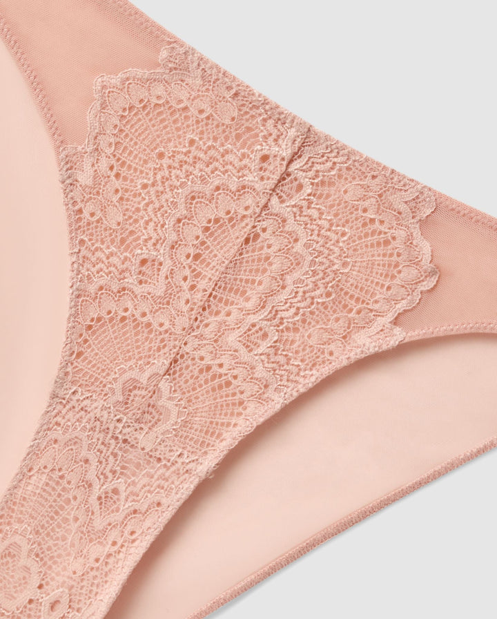 Kaum spürbare Elastikbänder. Gebogener Bund. Mesh & Spitze.