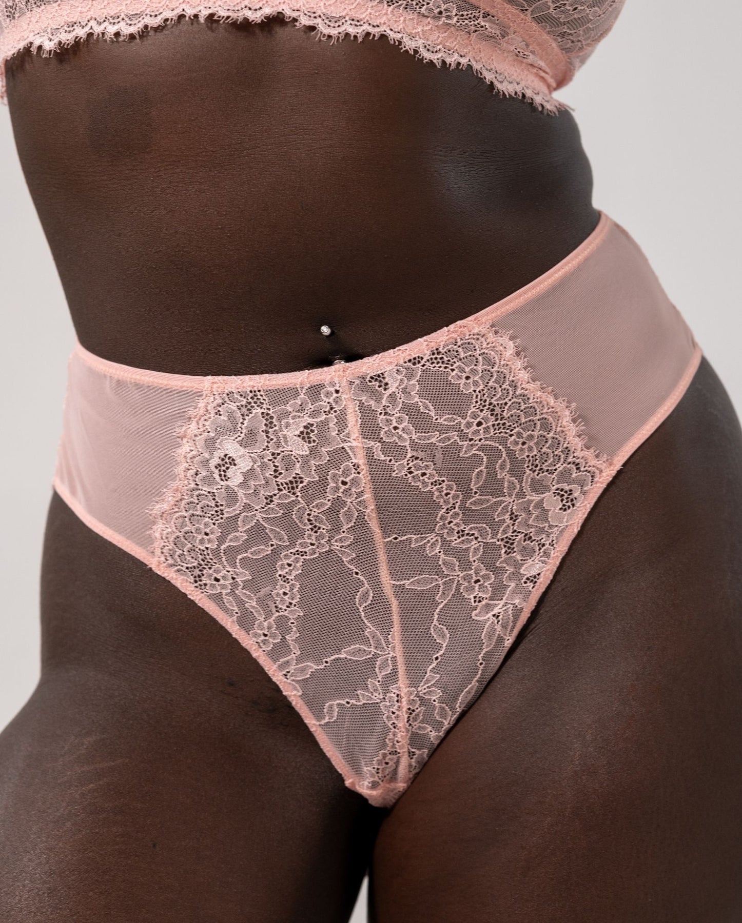 Slips /Lace Mesh Strappy Highwaist Thong Powder Pink