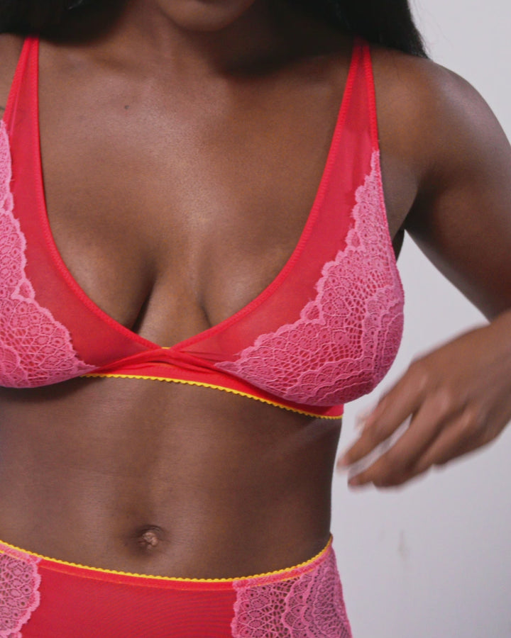 Mesh-Unterbrustband mit kontrastierendem gelbem Picot-Gummizug