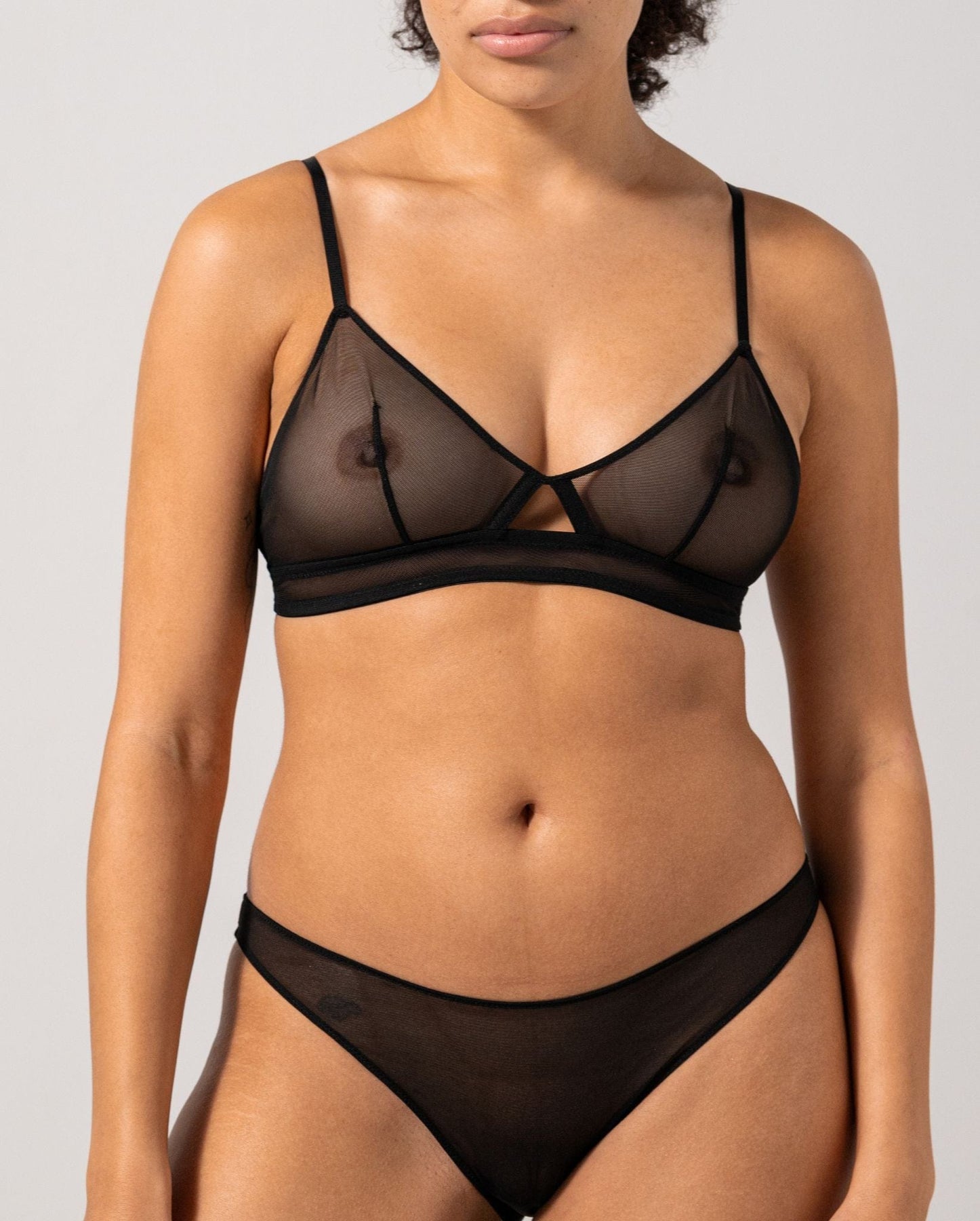 Dreieckige Körbchen aus weichem, transparentem Netzstoff, die zu den Seiten hin leicht verlängert sind