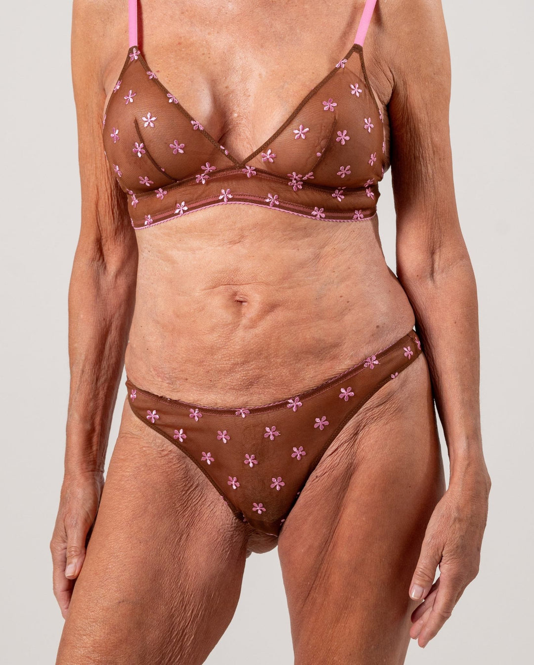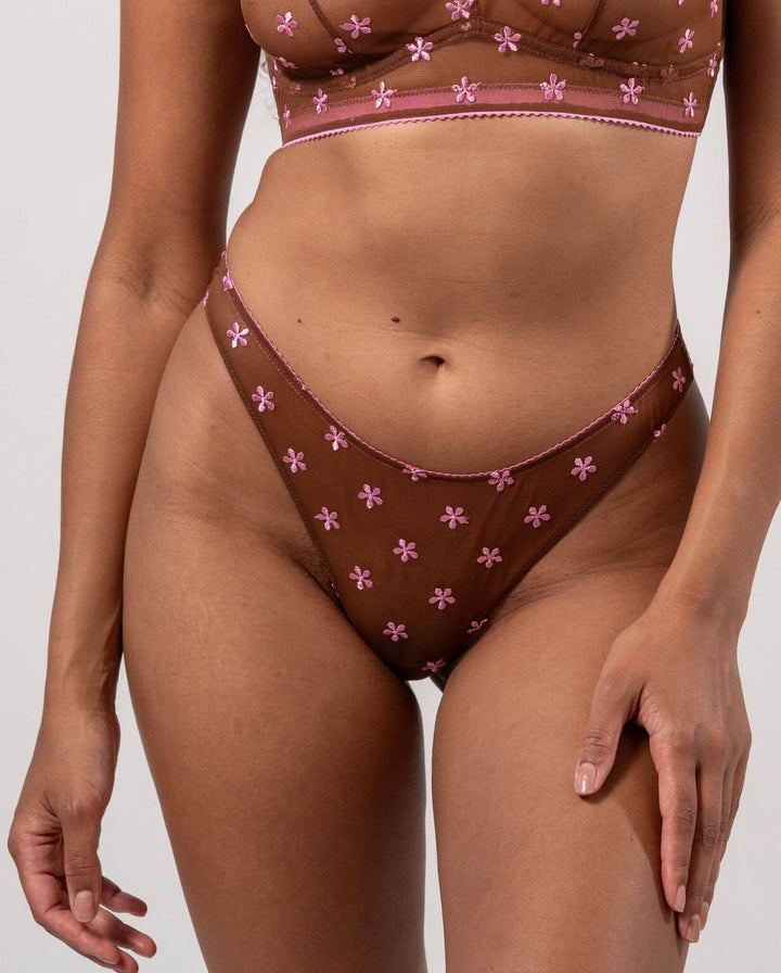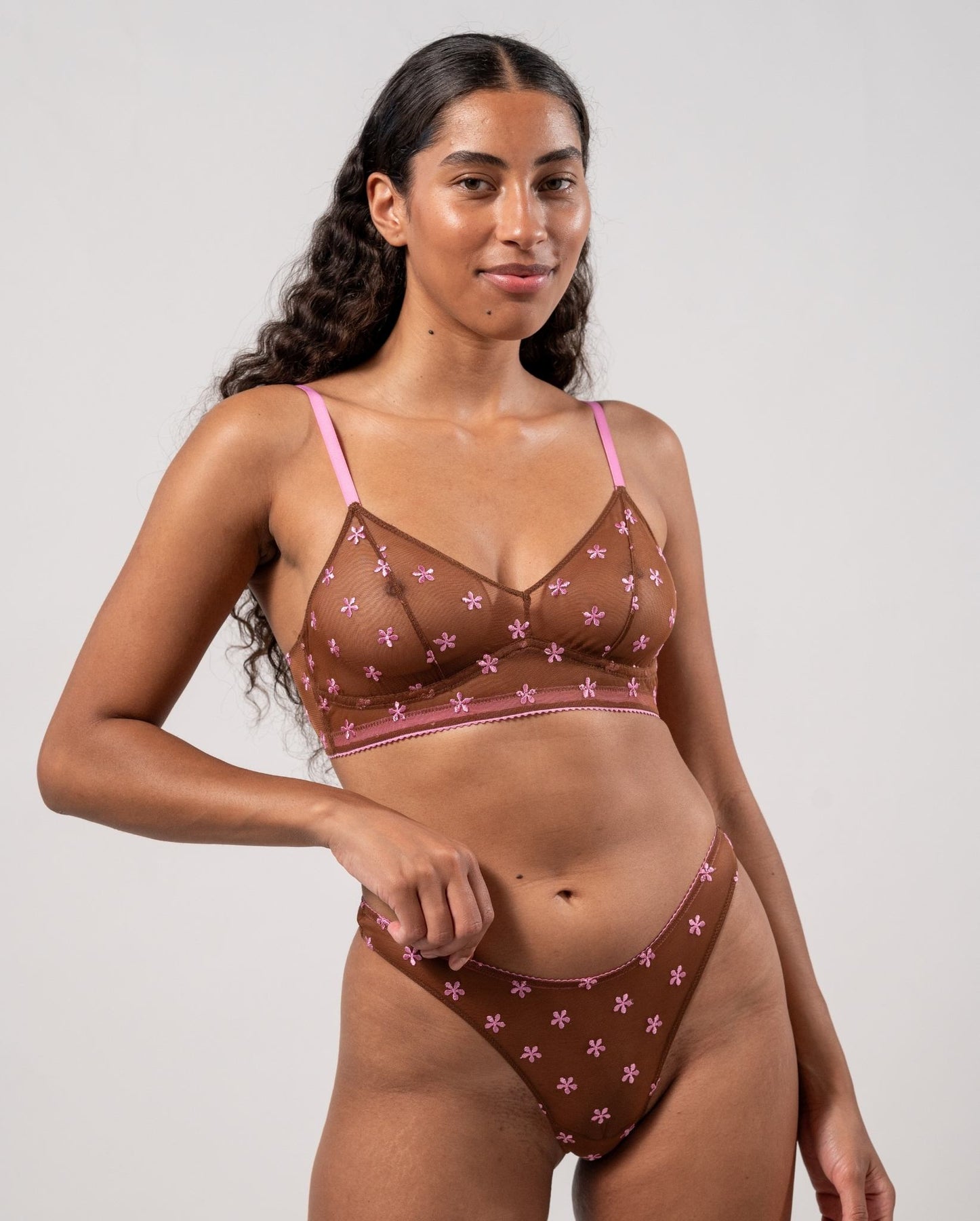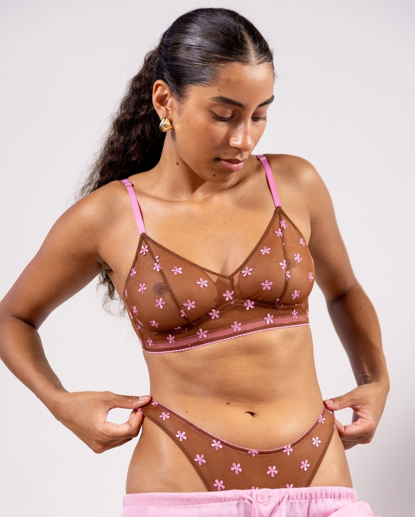 Hergestellt aus transparentem Mesh mit aufgestickten Blumen in Candy Pink