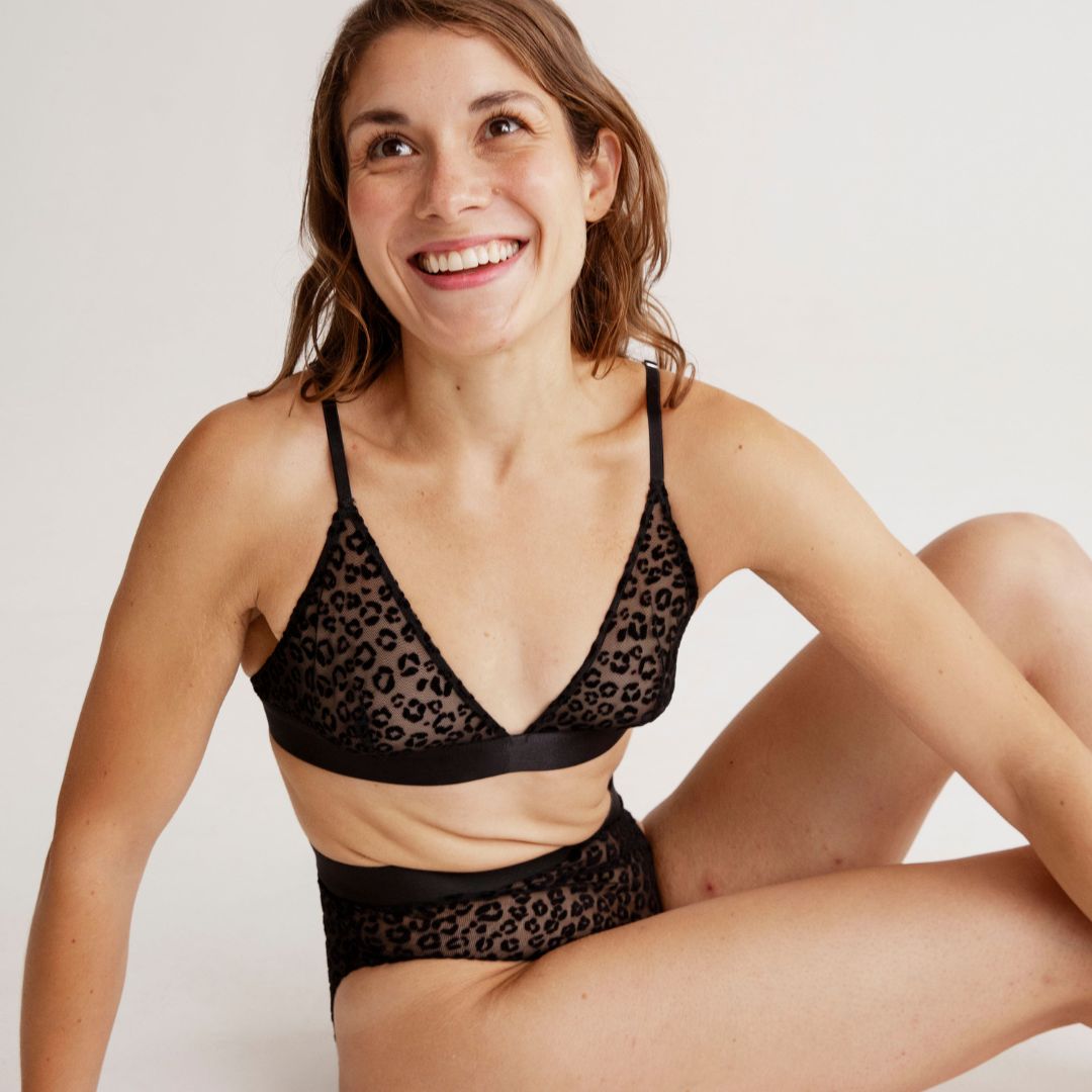 Mesh Triangle Bralette Black Leopard, size: M.