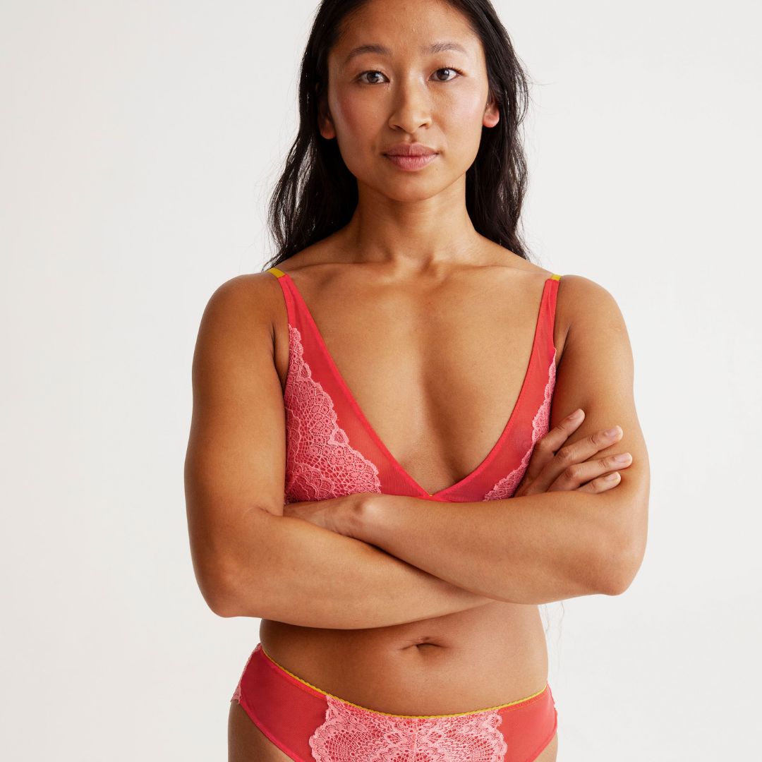 Lace Plunge Bralette Coral, size: S.