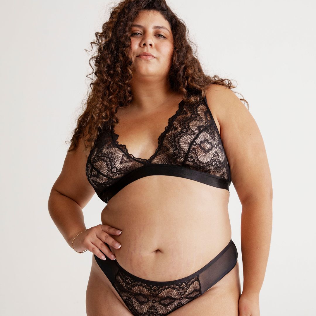 Lace Plunge Bralette Black, size: XXL.