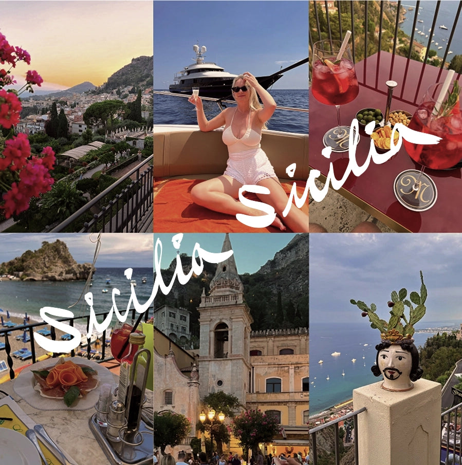 • A sunset aperitif on the panoramic Terrazza of Hotel Metropole, overlooking the bay of Taormina