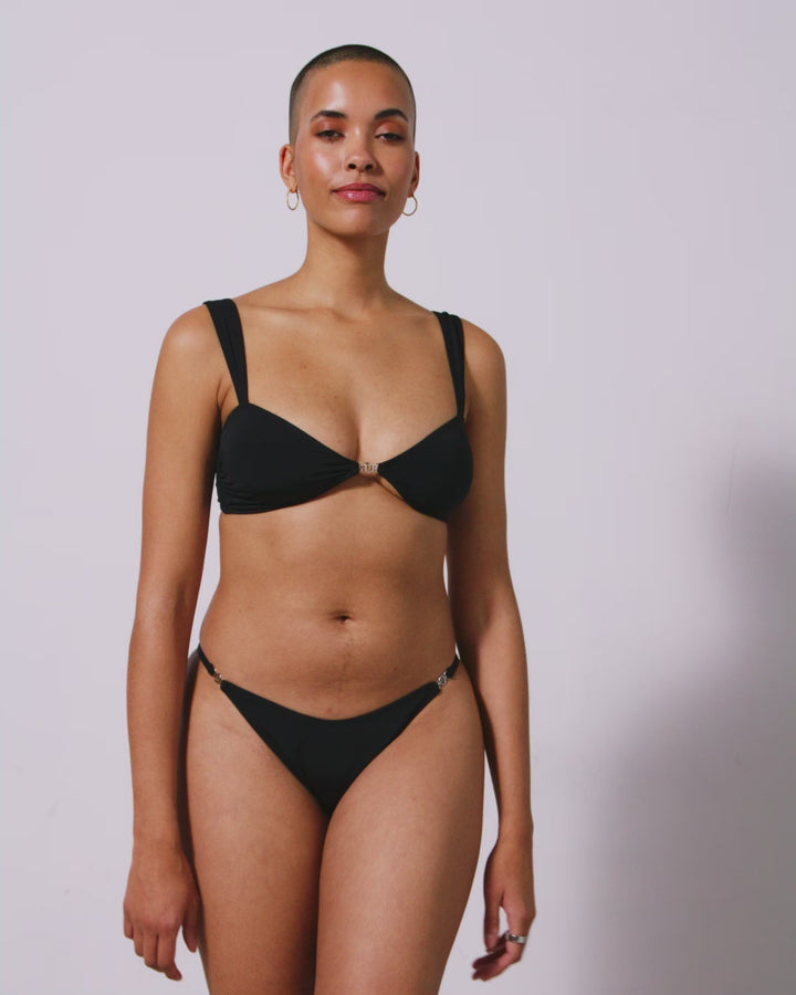 • Balconette bikini top with branded metal trim at the center front
