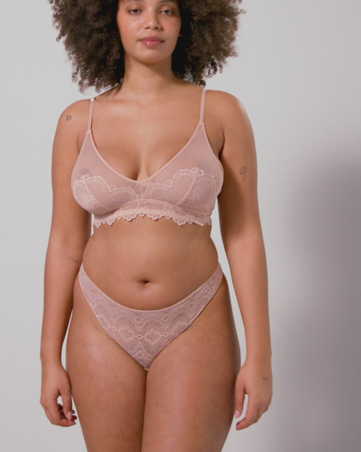 Lace that feels like butter on your skin? Say no more. Our signature feather lace features a slight stretch and great breathability.