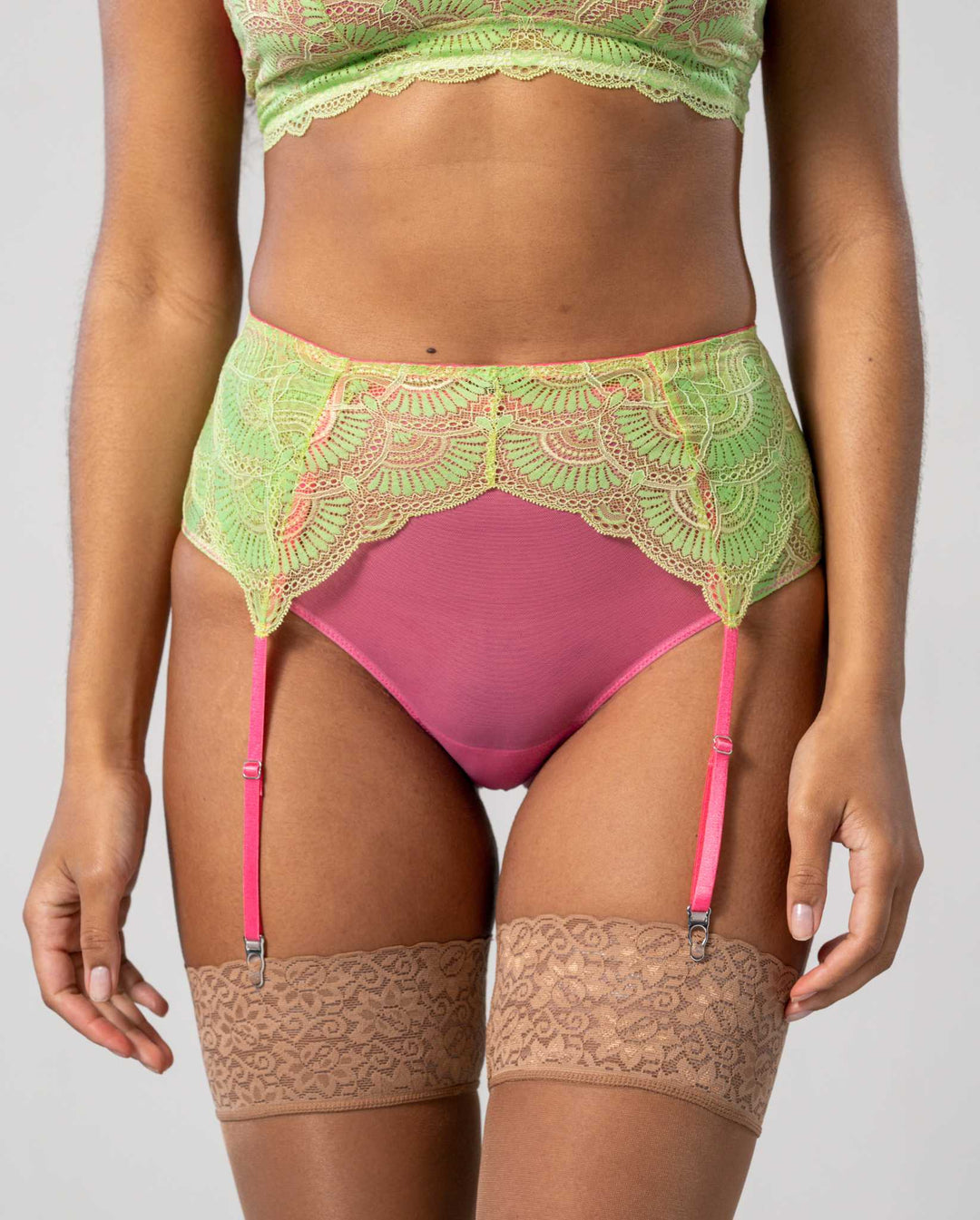 • Flattering suspender belt that can be worn high in the waist, or lower on the hips