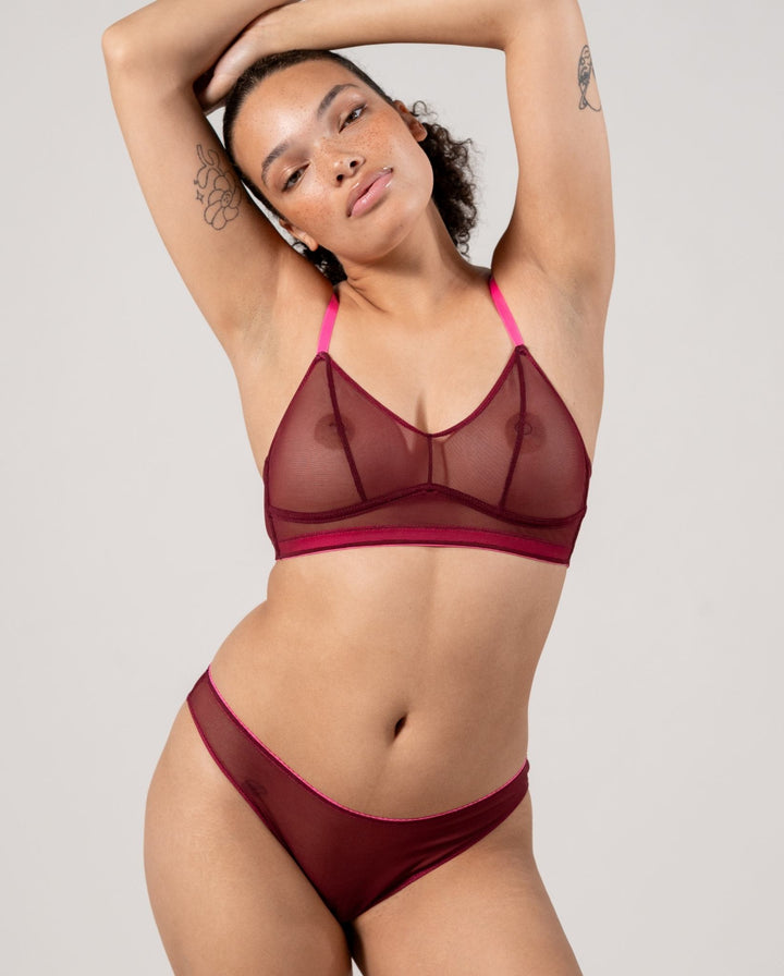 Panties /Mesh Bikini Briefs Burgundy/Neon Pink