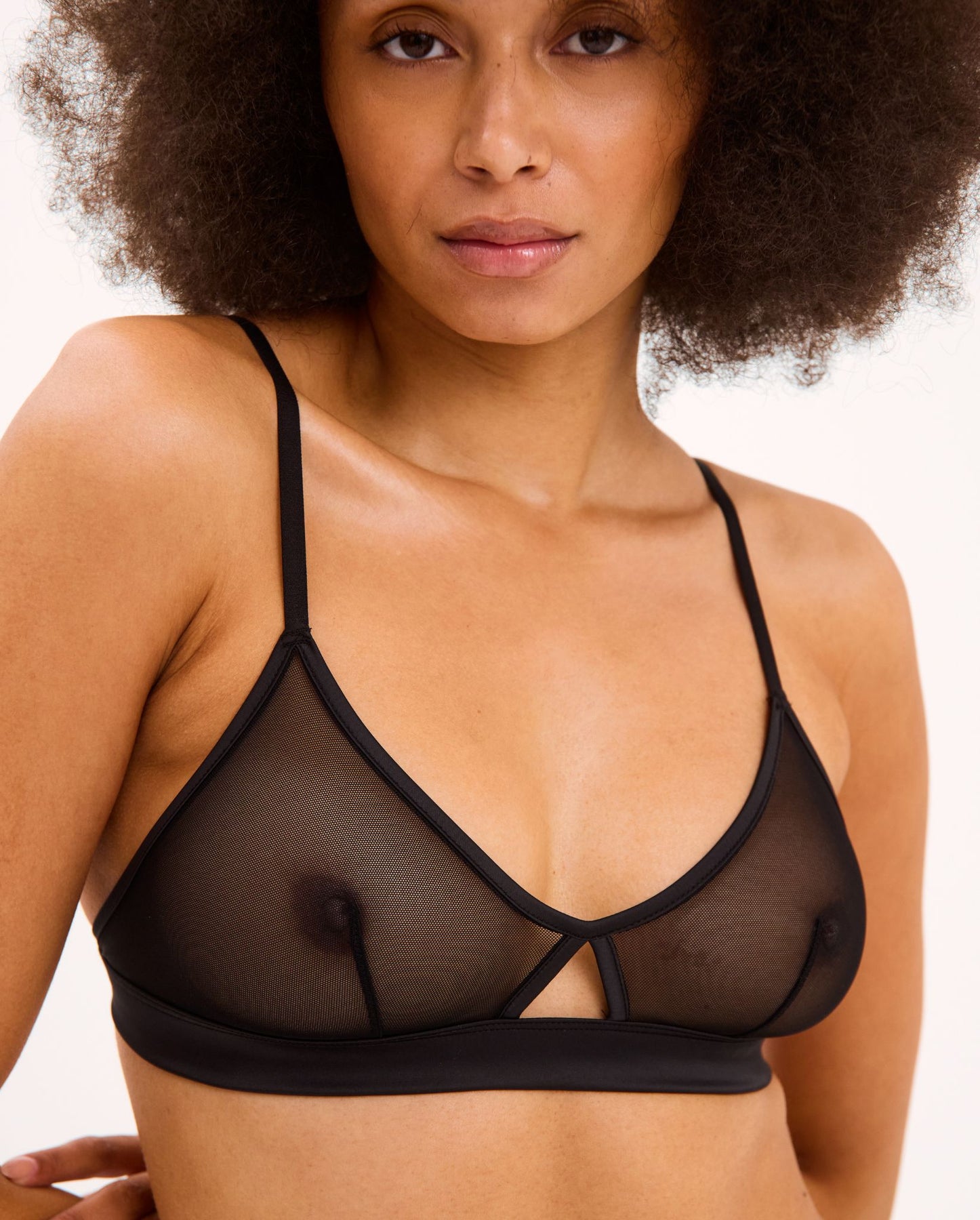 Bralettes /Mesh Cut-Out Triangle Bralette Black
