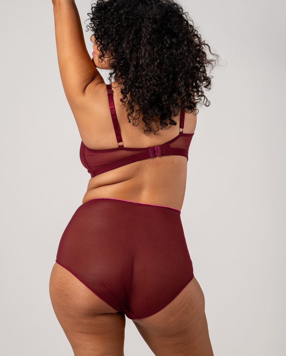 Mesh Highwaist Briefs Burgundy/Neon Pink