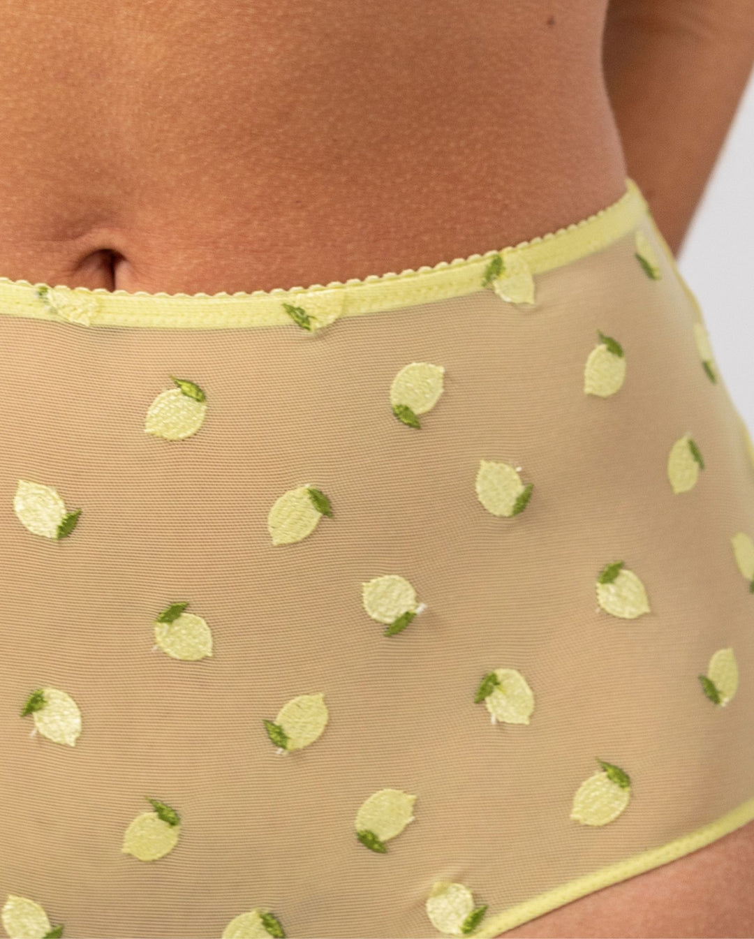• Crafted from a sheer mesh with all-over embroidered lemons
