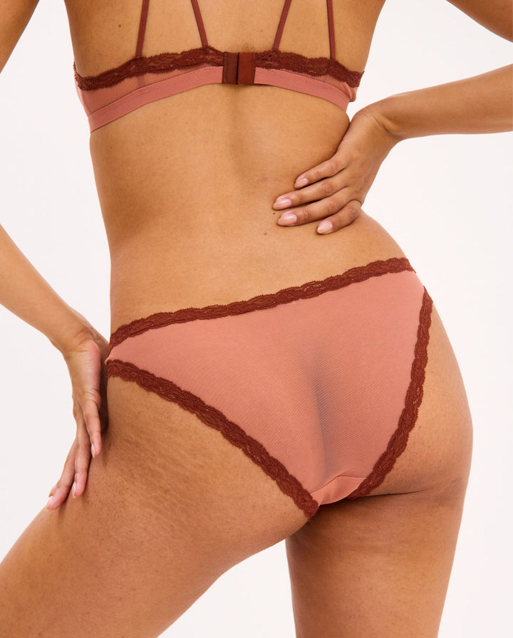 Mesh Lace Trim Bikini Briefs Blush