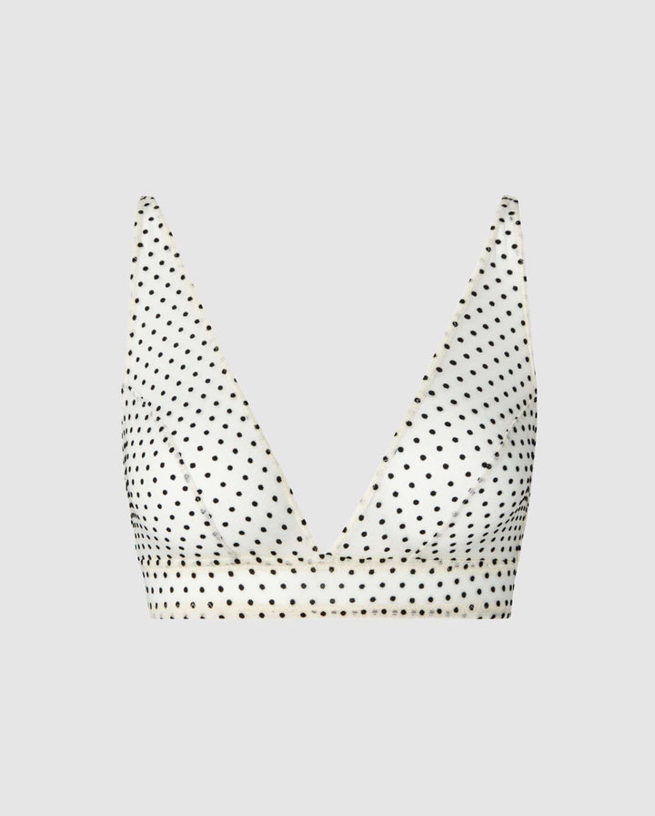 • Flock-printed mesh bralette