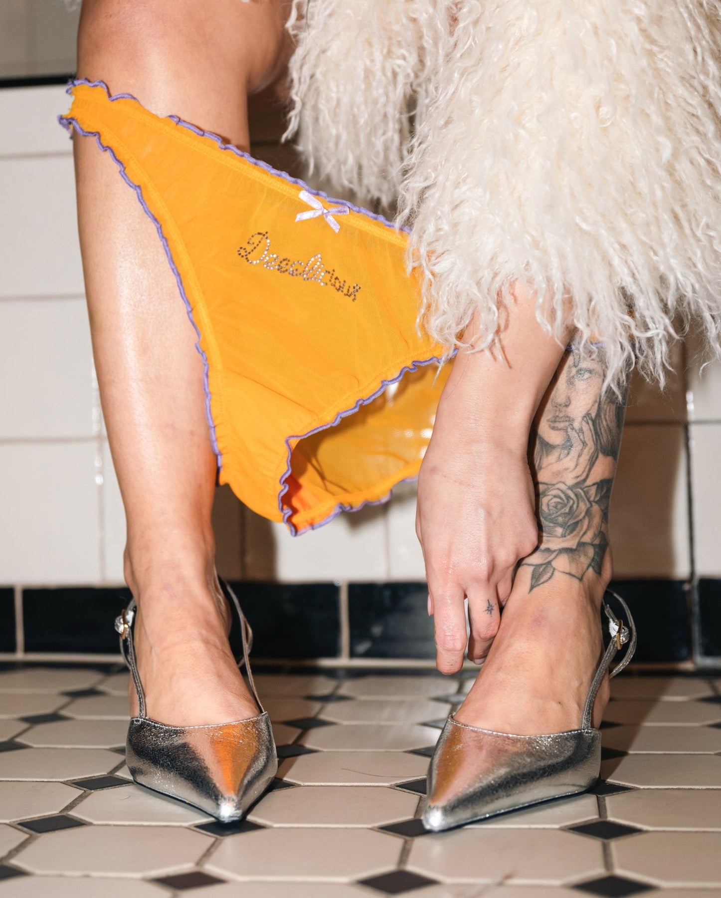 Mesh Ruffle Bikini Briefs Mustard/Electric Lilac