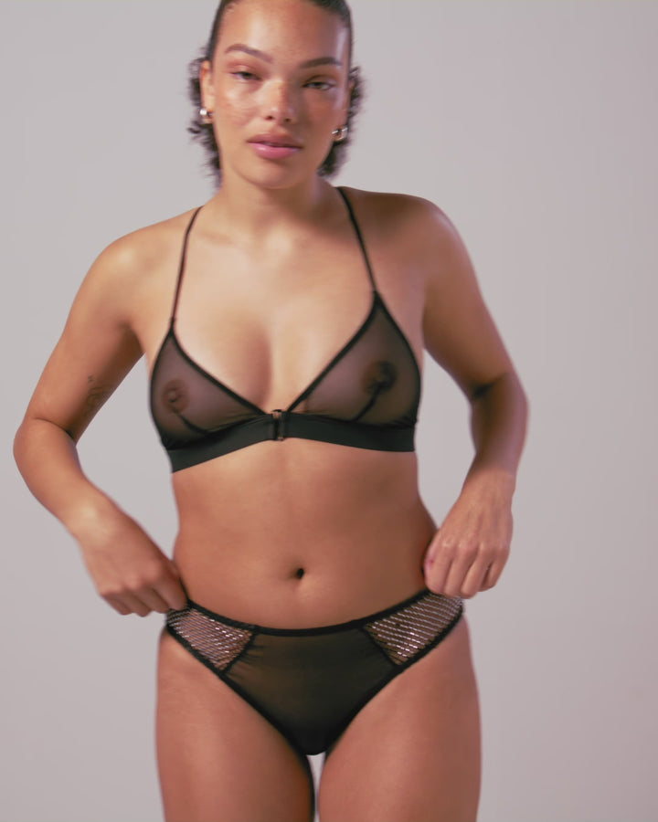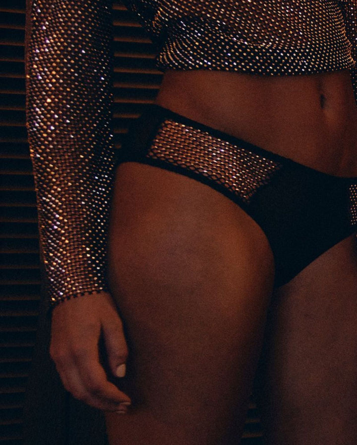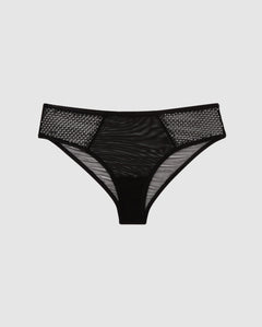 Sheer mesh, scooped waist, mid-rise fit. Limited edition.