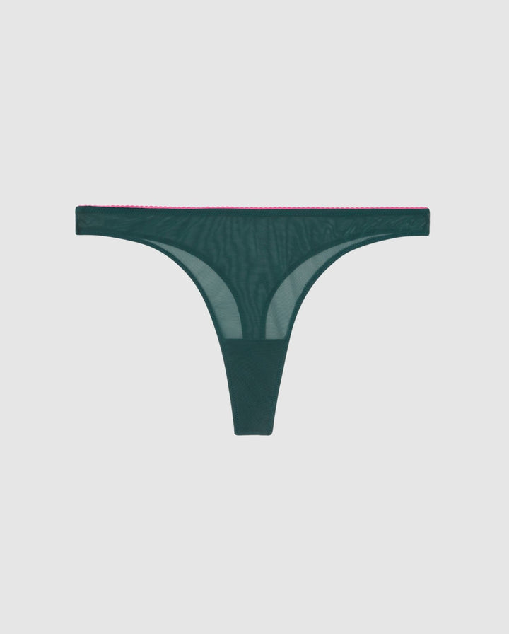 - Mid-rise thong that can be worn high in the waist or lower on the hips
