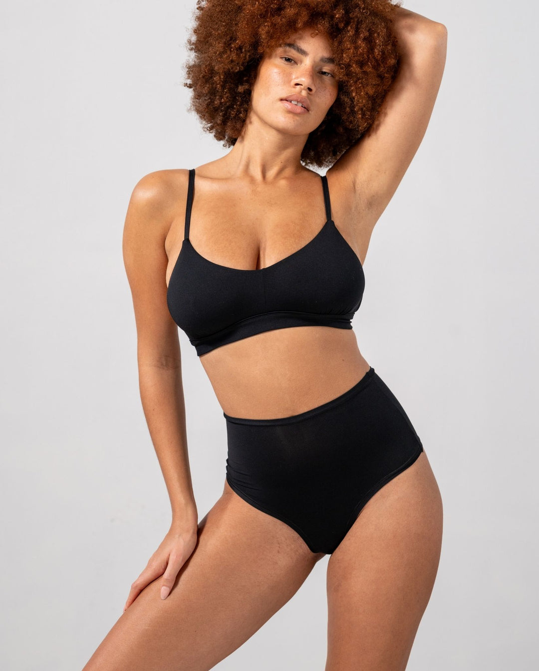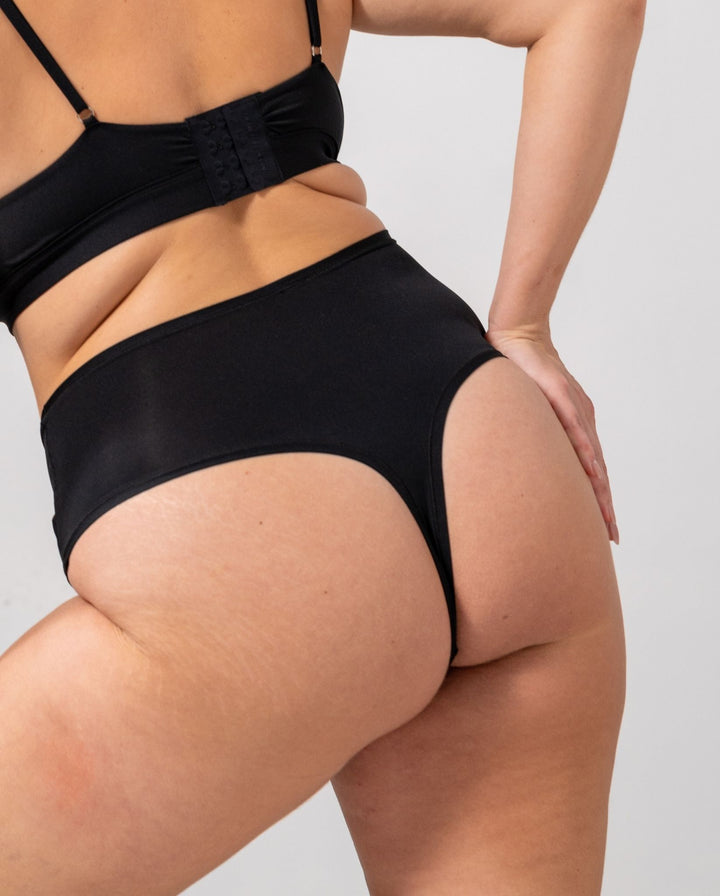 High-rise design and minimal bum coverage for a barely-there look & feel