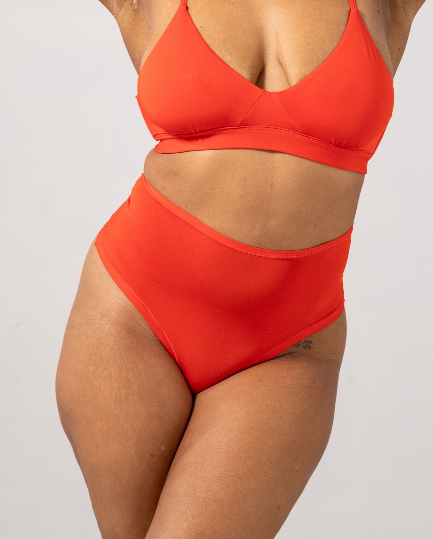 High-rise design and minimal bum coverage for a barely-there look & feel