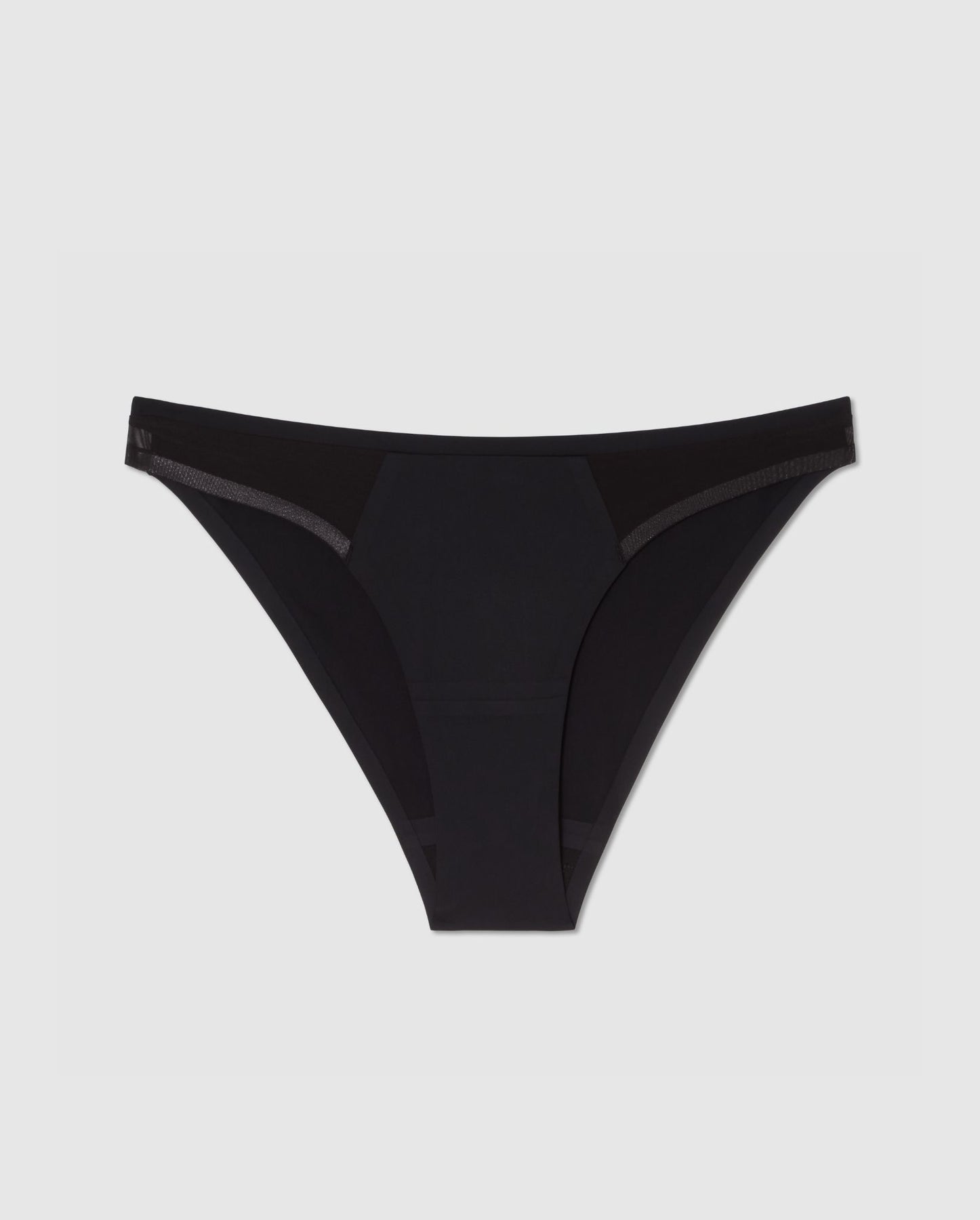 Mid-rise period bikini briefs made from recycled microfiber and mesh