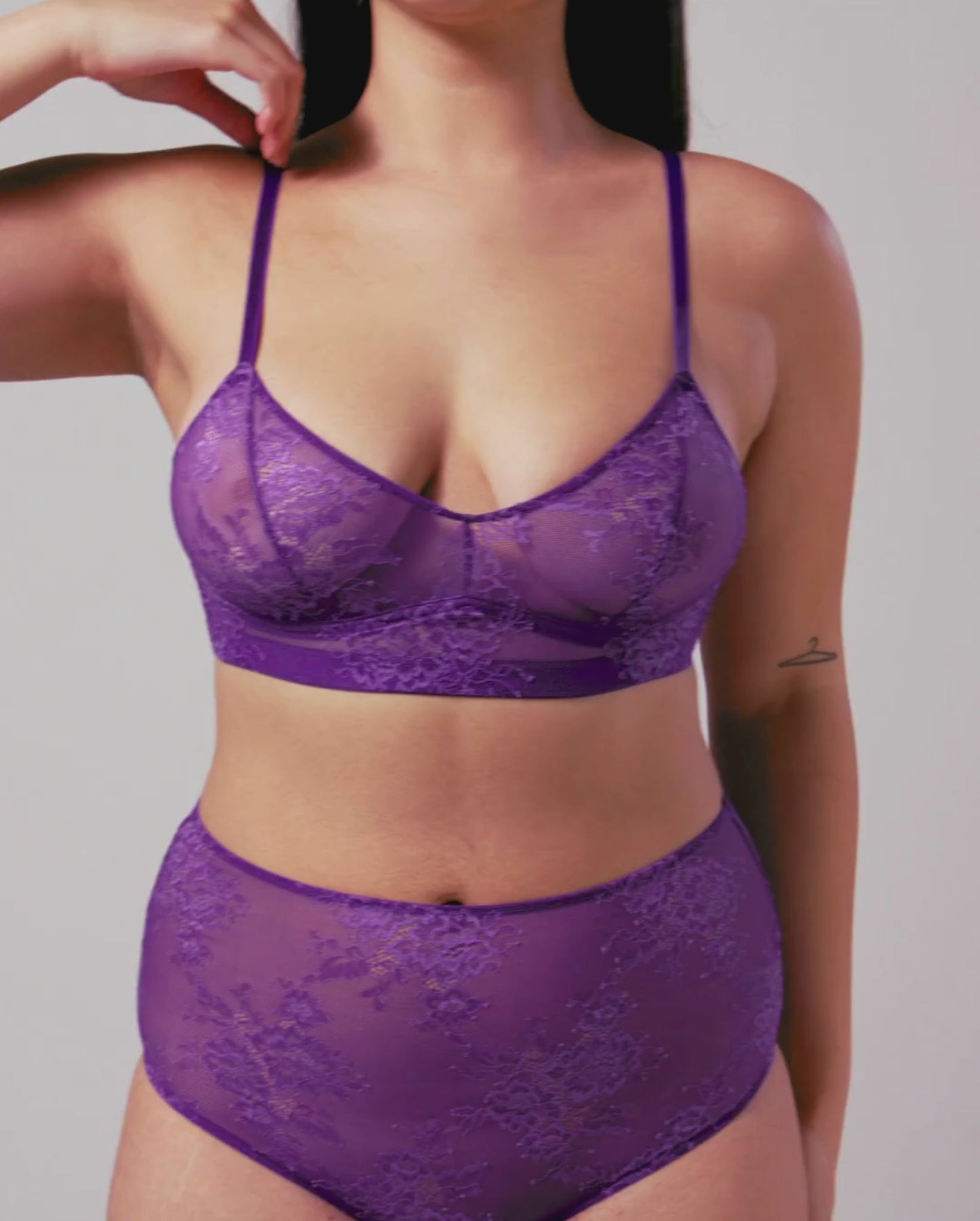 Balconette-formade kupor i genomskinlig spets med en uppbyggd mittfront för mer stöd