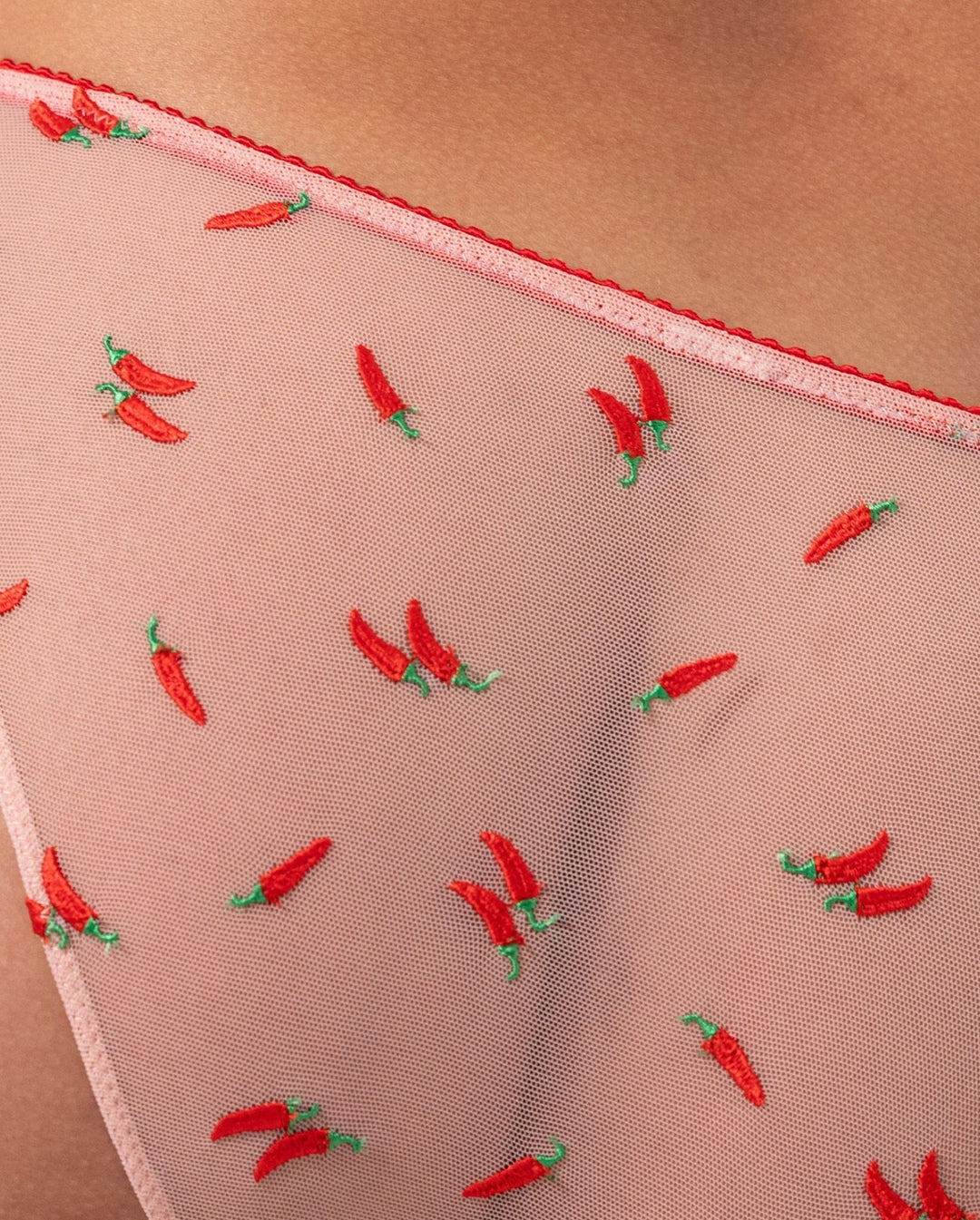 • Tillverkad i skir mesh med broderade röda chilifrukter