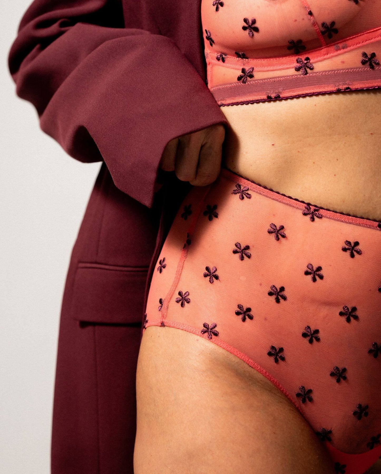 Tillverkad i skir mesh med broderat prästkrage-mönster
