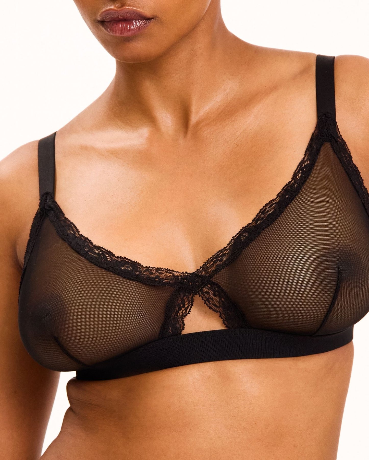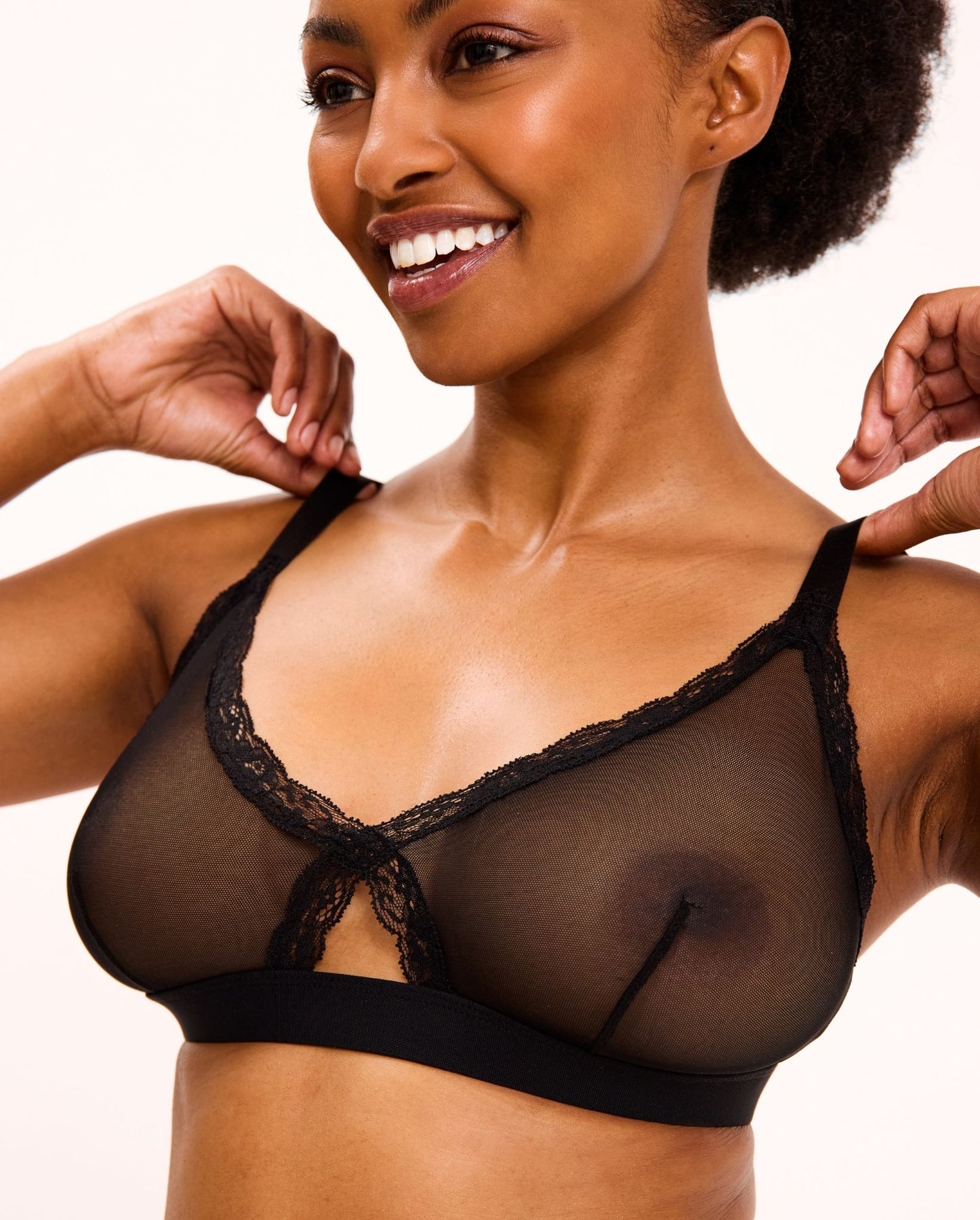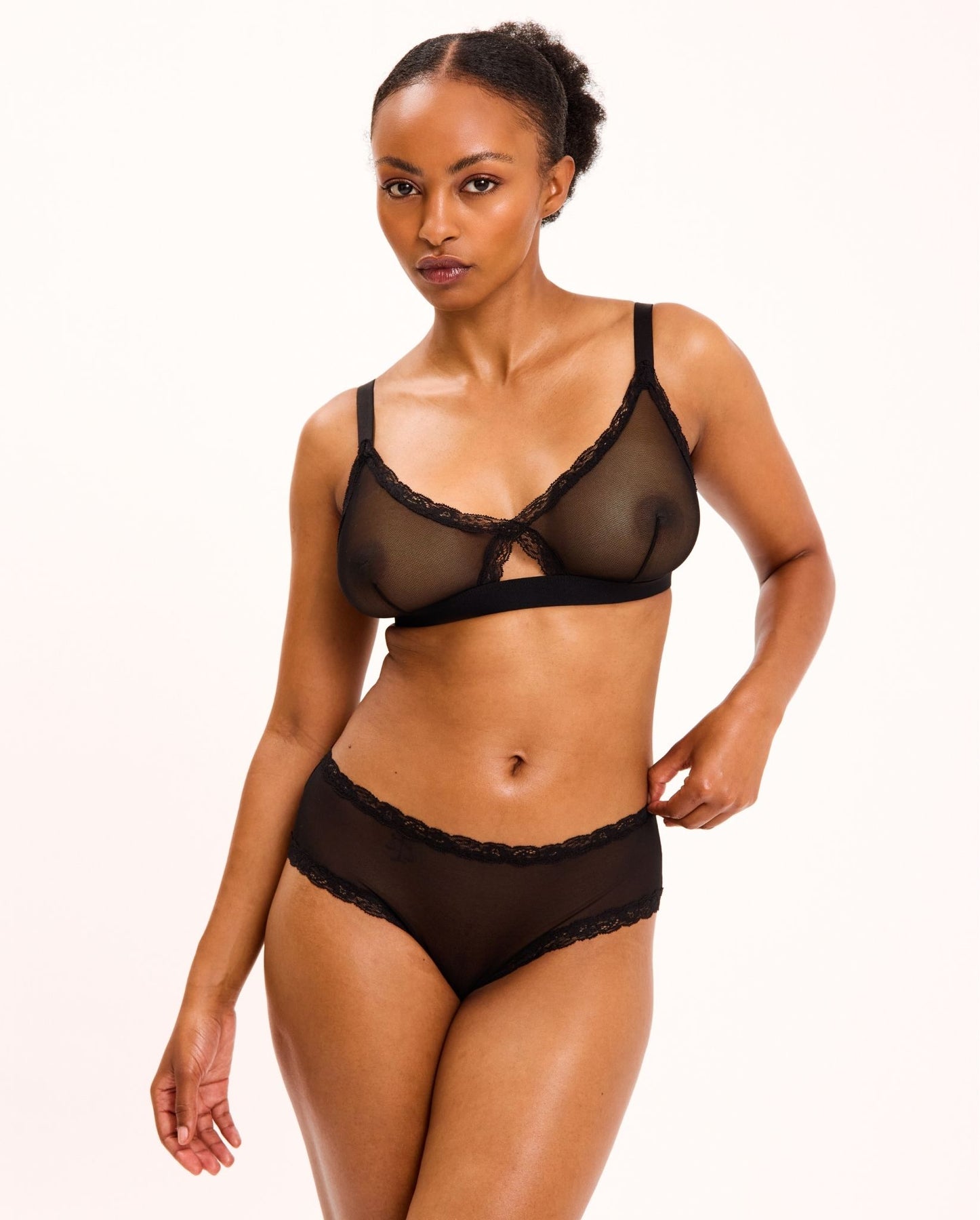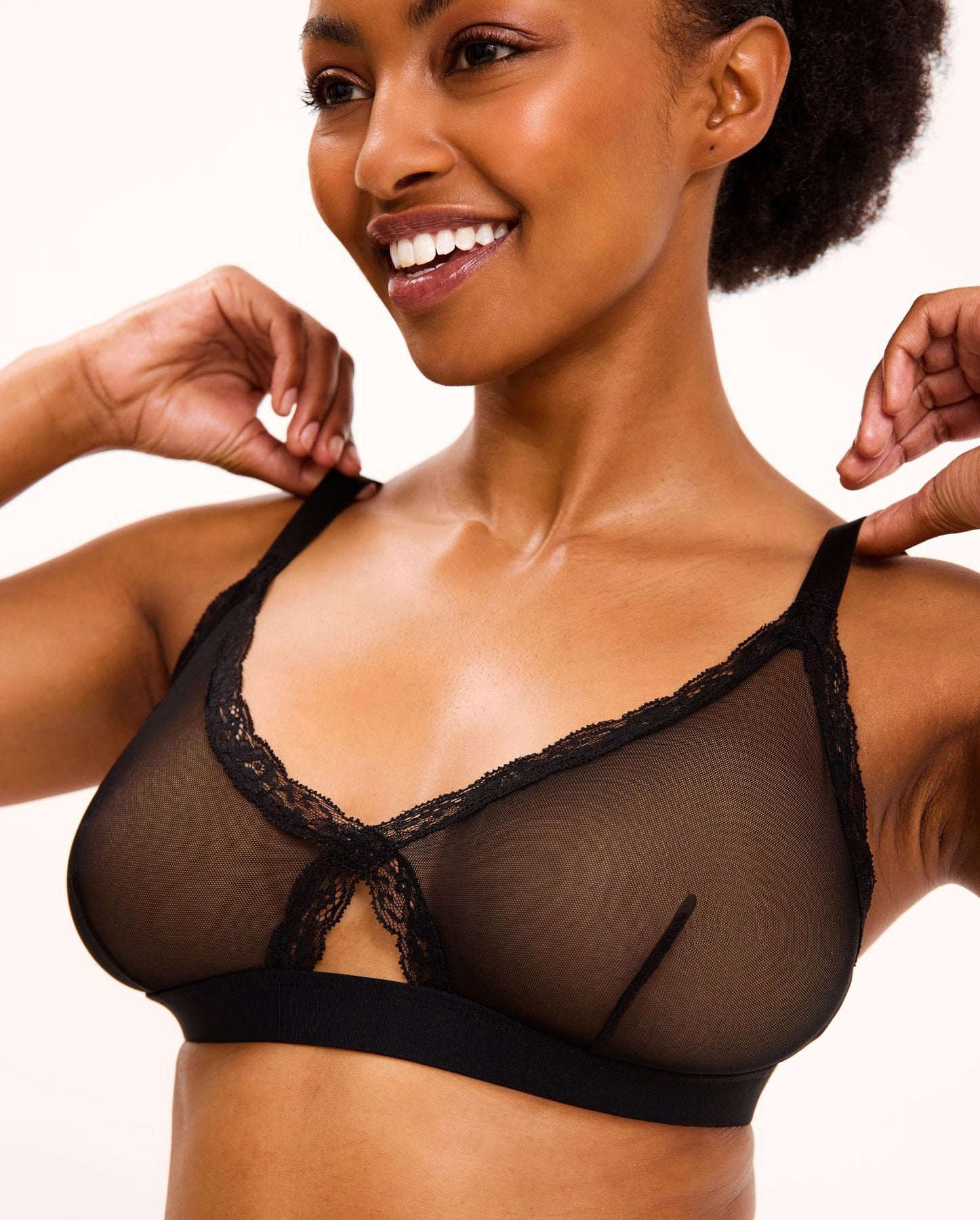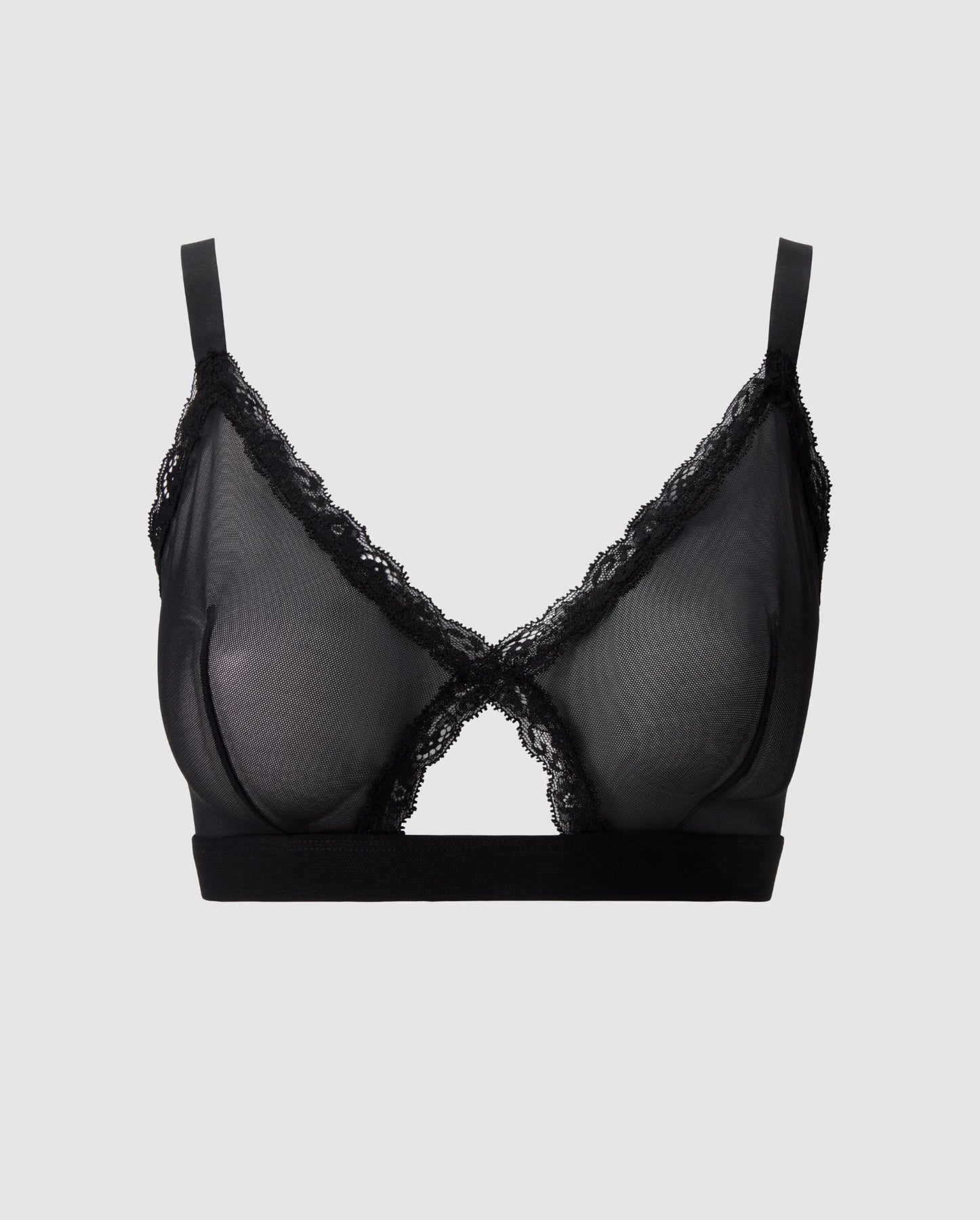 Triangle-shaped cups with lace trim along the edges for a feminine touch