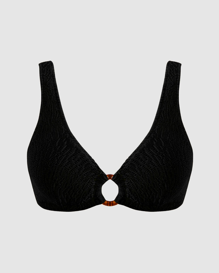 • Bikinitopp med rundad urringning och justerbar knäppning i ryggen